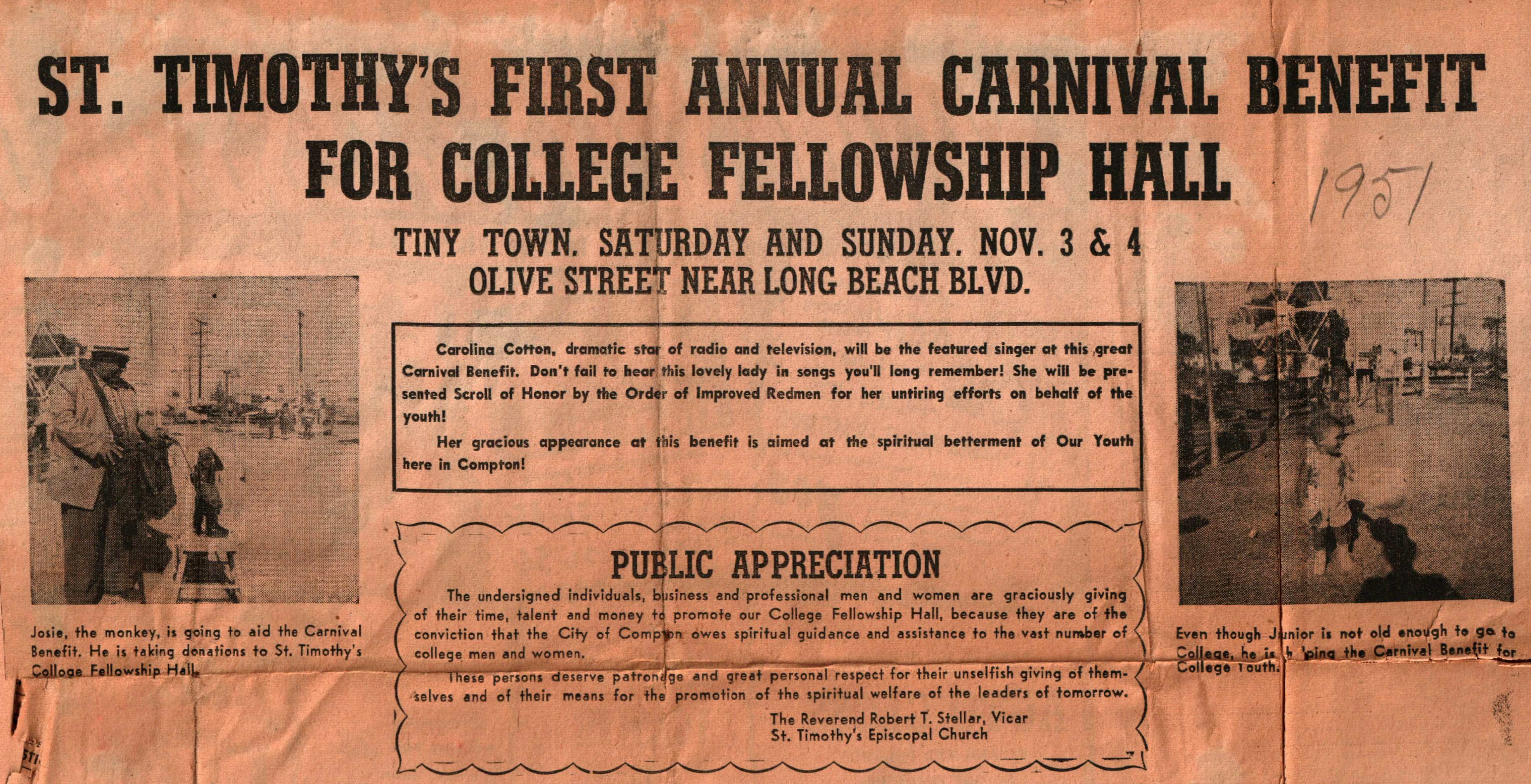 St. Timothy’s First Annual Carnival at TT 1951 w/Carolina Cotton as featured singer